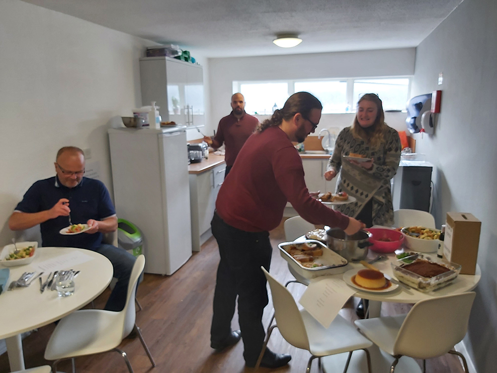 Under current conditions we do not have a full workforce in situ as many are working from home but those that were in the office did well and those at home looked on adoringly at the food and made online contributions to our ever growing tree collection.