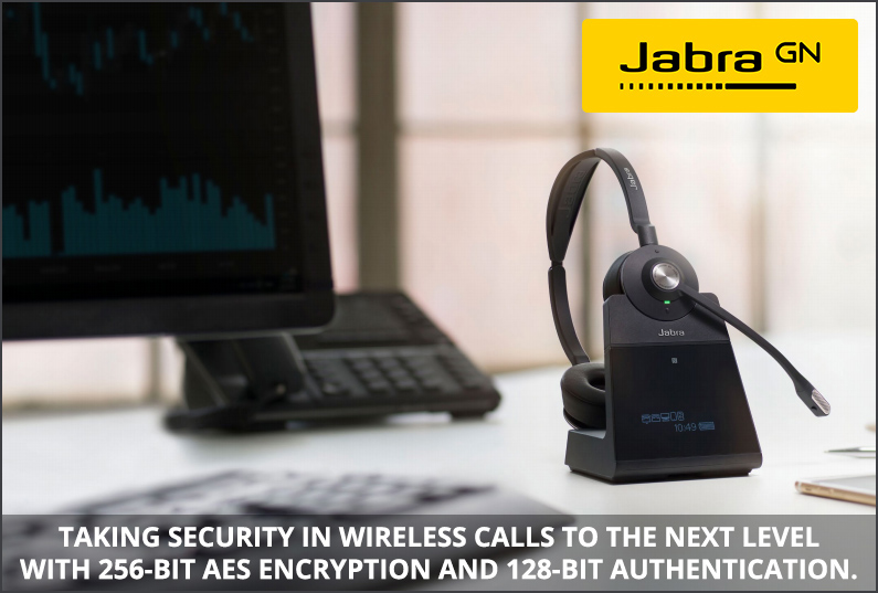 MILITARY GRADE SECURITYJabra’s Engage headsets offer increased security over their wireless range which in the age of increasing threats of snooping and intrusion into business is something that anyone equipping an office with headsets needs to take into account. The Jabra Engage series of headsets have 256-bit AES encryption and 128 bit authentication as standard – enabling far higher than usual levels of security in what are some of the best headsets on the market.