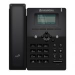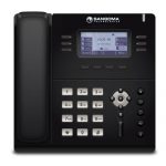 The entry level model is the Sangoma s300 VoIP Phone – with HD this is a desktop feature phone which can accommodate 2 SIP accounts whilst having 6 feature keys and a monochrome LCD display.
